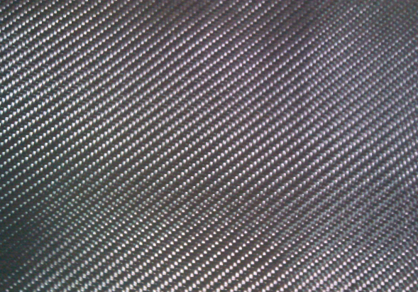 斜紋編織纖維布具有與纖維束排布方向有一定夾角的斜向紋路,這個紋路方向上并不存在纖維束,而是由于纖維束經(jīng)緯向編織過程,經(jīng)向或緯向纖維束跳過兩束緯向或經(jīng)向纖維進行編織。也就是纖維束一上一下的編織頻率減小,纖維束浮長增大,同時相鄰兩個纖維束錯開一個編織位。這種斜紋外觀具有很強的立體感,用來做汽車改裝制品,比如面板、引擎蓋、排氣筒等。